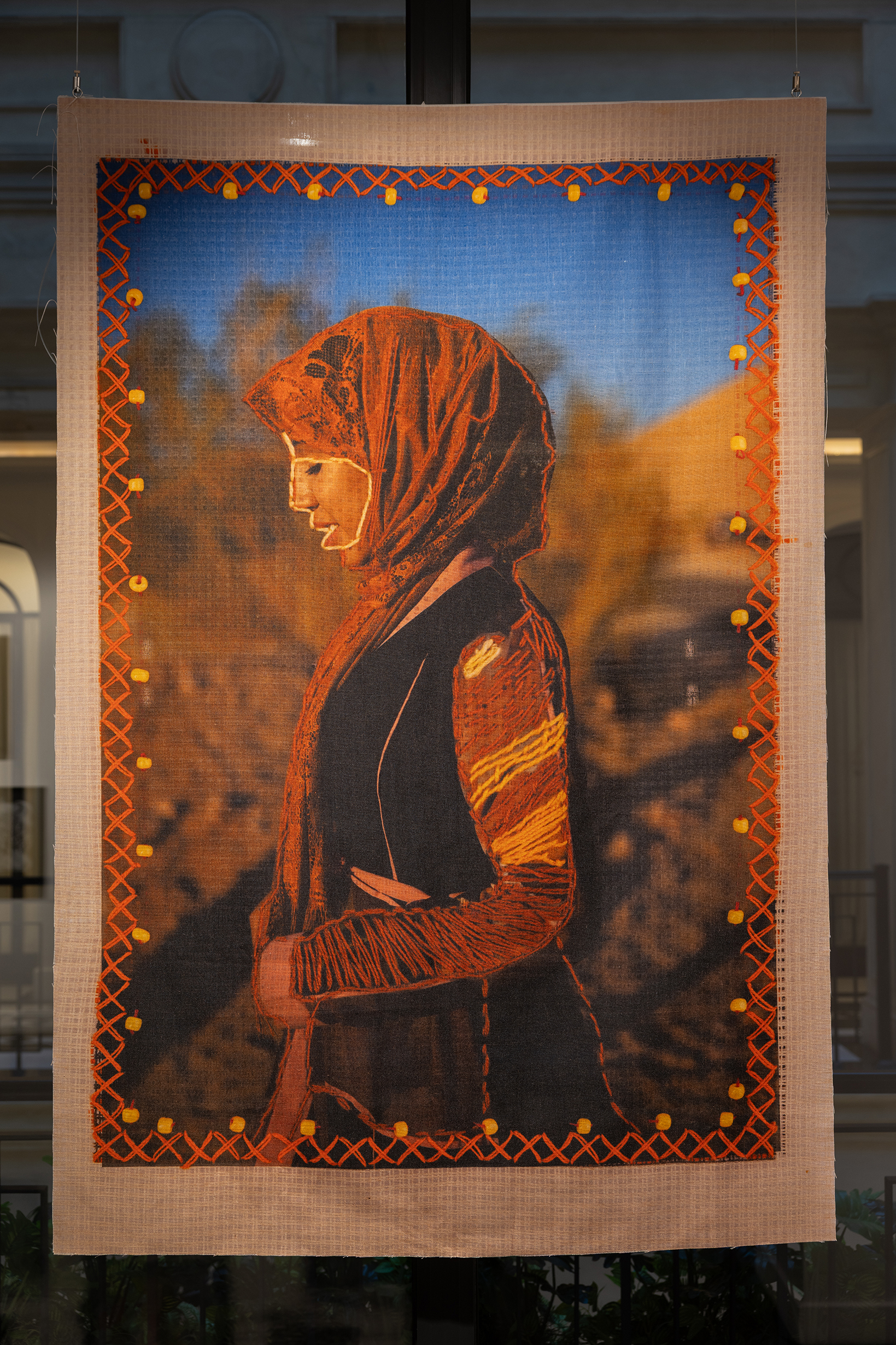 Nadyanın parça üzərində naxışlanmış fotoşəkili. Tikmə işi bibisi/xalası qızı Məryəm tərəfindən hazırlanıb. Müqəddəs Yekaterina, Misir, 2019.